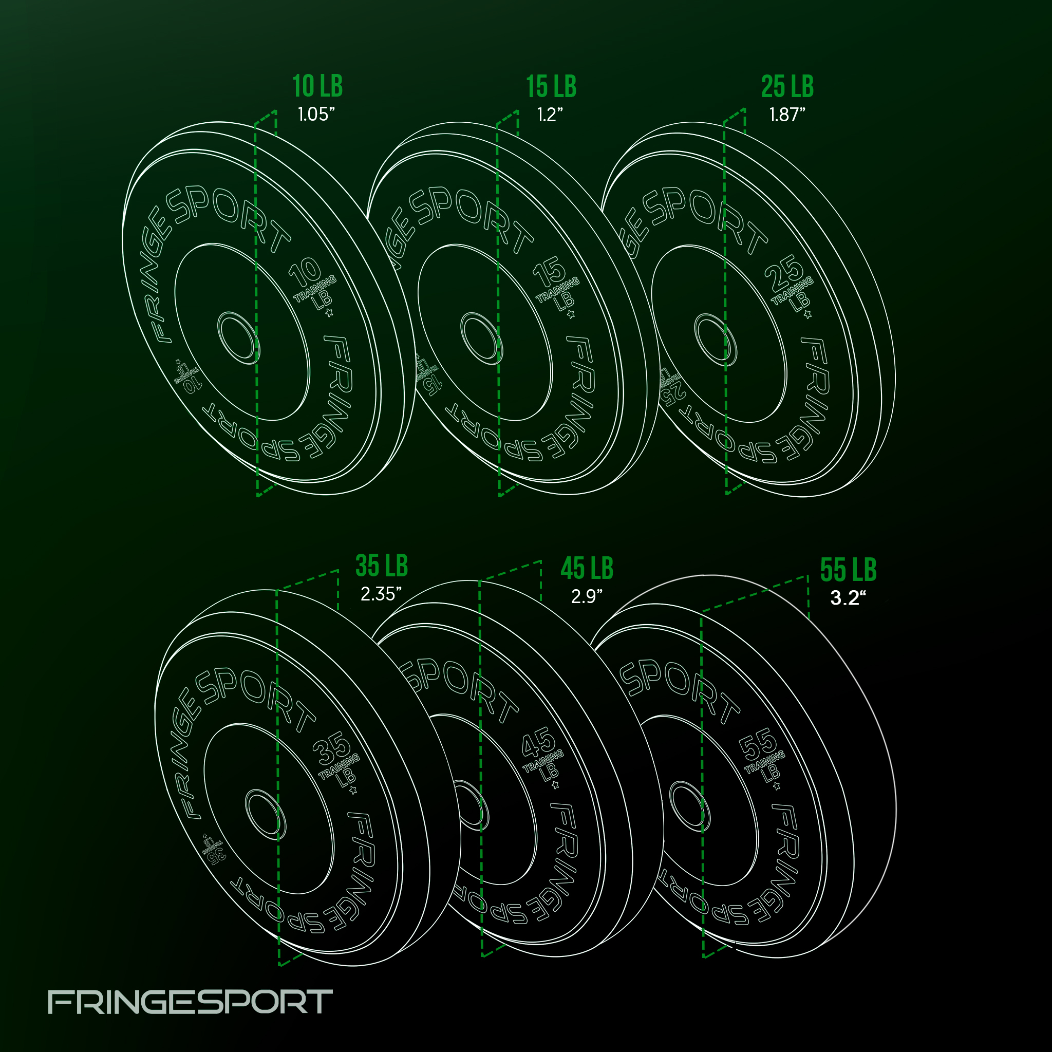 - Mix & Match Compatibility – All Fringe Sport bumper plates maintain a standard diameter, so you can seamlessly mix and match weights on your bar.